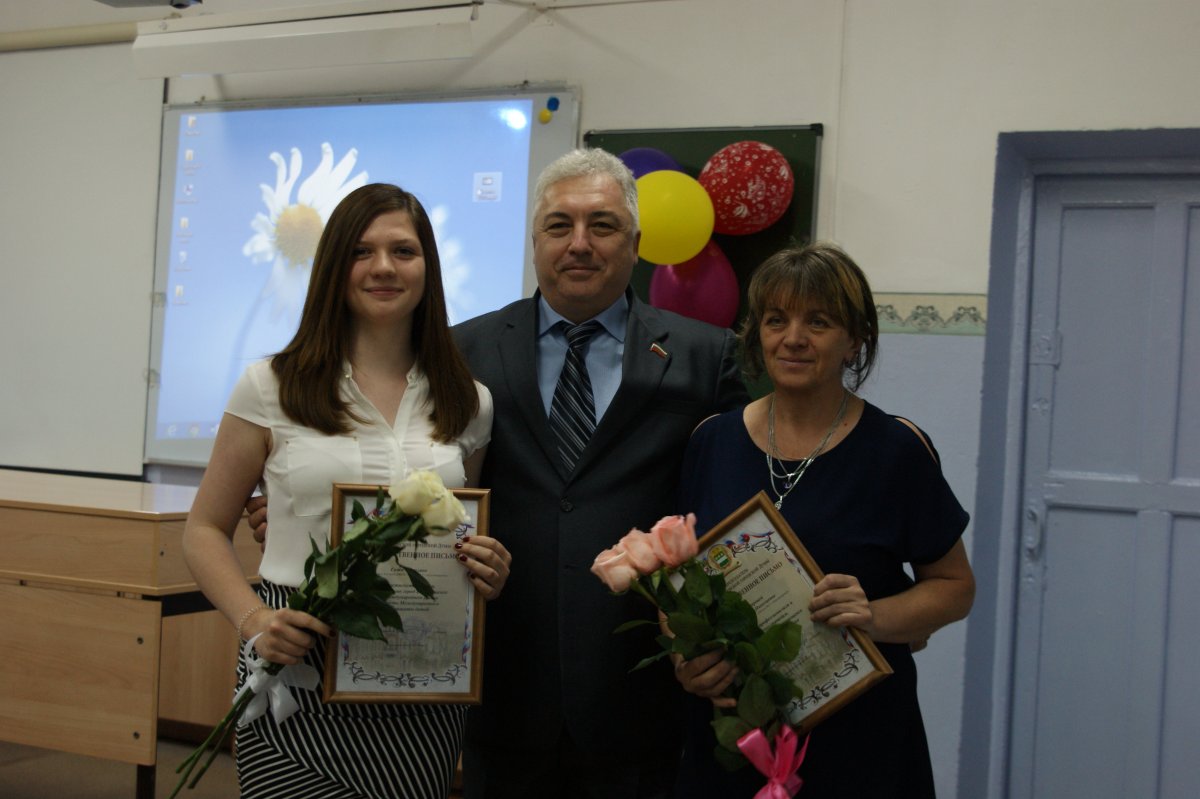 Талантливых школьников Благовещенска также поздравили депутаты городской думы. Заместитель председателя городской думы Эдуард Хасаншин вручил Благодарственное письмо и подарок ученице школы №27 Светлане Гожа и Благодарственное письмо учителю биологии Наталии Федоровой за победу в международных конкурсах и олимпиадах по биологии.