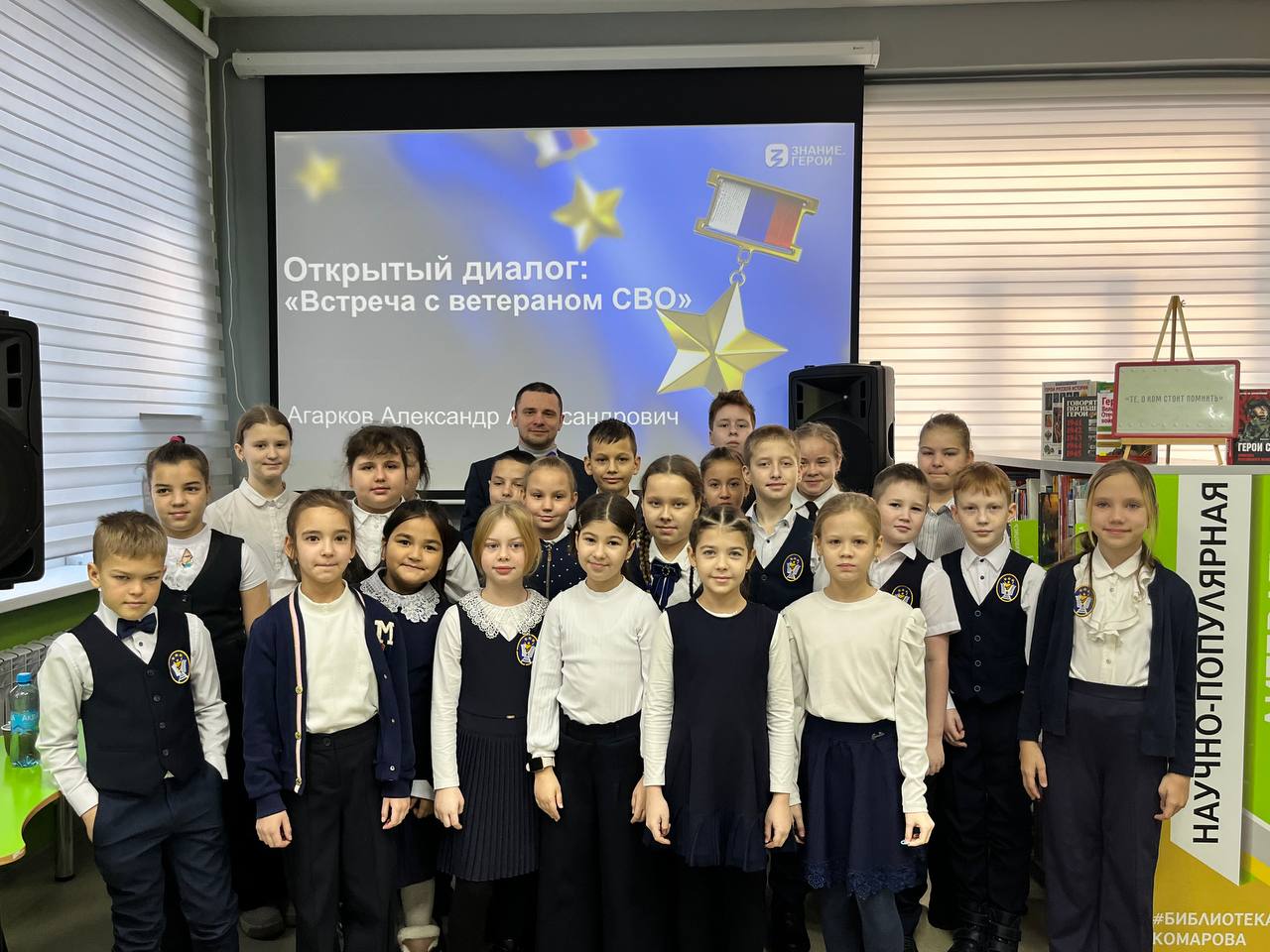 Депутат по 14 избирательному округу, ветеран СВО Александр Агарков встретился с учащимися 4 класса школы № 12 в муниципальной библиотеке детского развития П. С. Комарова. Встреча прошла в рамках сохранения исторической правды и повышения уровня информированности граждан о спецоперации. Александр Александрович рассказал школьникам о целях СВО, о воинском долге и патриотизме. А также о том, как важно всем россиянам быть сплоченными.