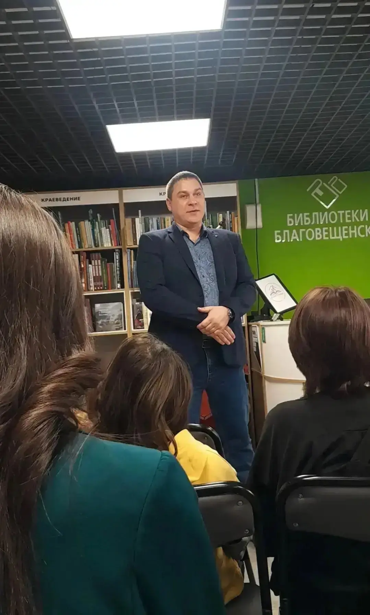 Депутат 22 округа Вячеслав Ершов побывал в библиотеке имени Б. Машука. Программа вечера была посвящена истории России и народным обычаям. Депутат высоко оценил уровень подготовки организаторов, отметив, что библиотеки Благовещенска перестают быть просто хранилищем книг и становятся ярким, живым культурным и досуговым центром, притягивающим людей всех возрастов.